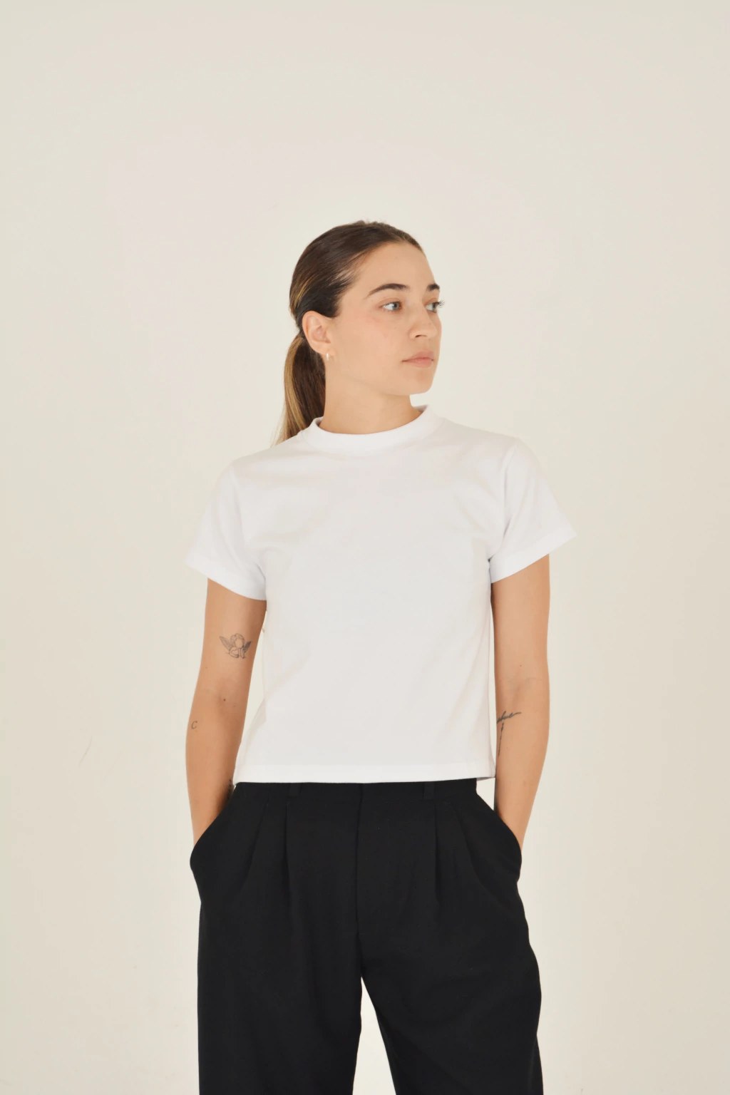Remera Baby Tee, manga corta, confeccionada en 100% Algodón Premium con cuello de ribb. El algodón es calidad premium, se llama "bulky" porque es pesado y voluminoso, no transparenta y tiene mucha durabilidad, no lo podemos explicar por acá, vas a tener que agregarlo al carrito. La remera es larga hasta la 1ra cadera, tipo baby tee, no es oversize pero tiene un corte recto, es cómoda, práctica y perfecta. Para nosotras, una básica clave, la podés combinar con cualquier prenda y va a ser la base de muchos de tus outfits. El estampado está hecho en serigrafía con tinta al agua (amigable con el medio ambiente), hechas una por una a mano.