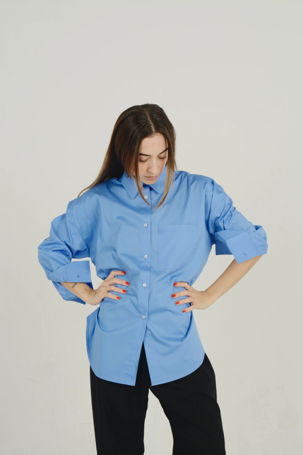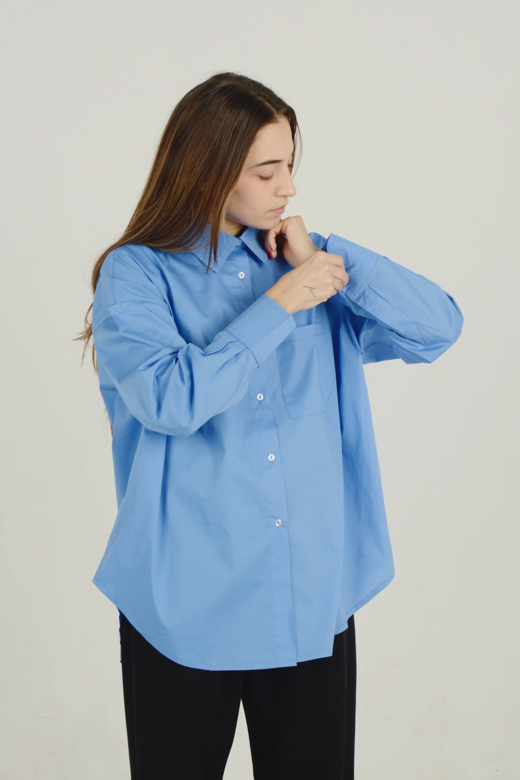 Camisa oversize, amplia, manga larga, con un calce espectacular y con detalles que la hacen única. Tiene un tablón y una solapa en su espalda, puños y cuello entretelado y un bolsillo asimétrico. El corte es oversize, por lo que debería quedarte holgada. El textil es Poplin de Algodón Premium (97% Algodón, 3% Spandex), es suave al tacto, liviano, fresco, con buena caída, sin brillo y elastizado, no podemos pedir nada más.